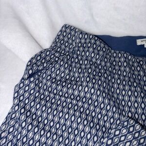 Max Studio XL Wide Leg Pants Blue/White Geo Print Stretchy Knit Pull On Office