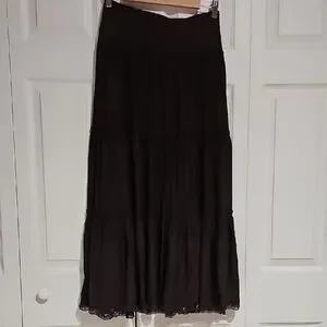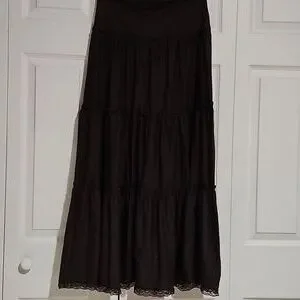 GNW Brown Tiered Maxi Skirt Lace Hem Size Small