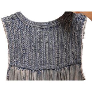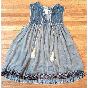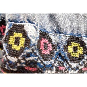 Rachel Zoe Chambray Denim Top Boho Hippie Embroidered Crochet Size S Blue