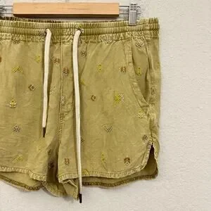 PILCRO ANTHROPOLOGIE Shorts Womens M Khaki Embroidered Drawstring Casual Beach W13342