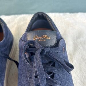 Experience the perfect blend of style and comfort with these Good Man Brand sneakers. Featuring a deep navy blue suede upper and contrasting white soles, these low-top sneakers offer a sleek and modern look. The lace-up design ensures a secure fit, making them ideal for everyday casual wear.