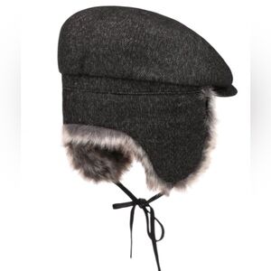 Bailey Of Hollywood Black Flat Hat with Gray Fur Trim NWT