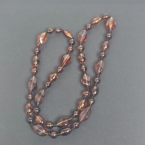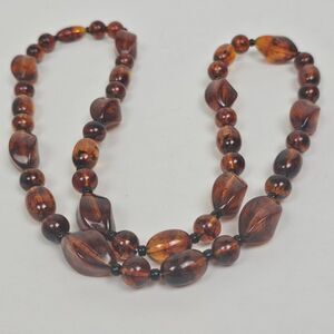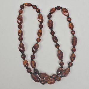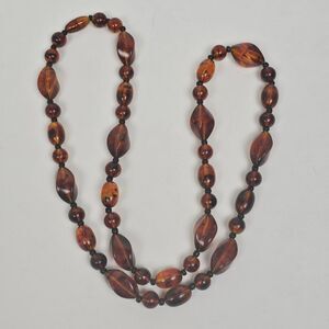 Vintage Long 30.5" Faux Cognac Amber Necklace Chunky Bead Marbled Plastic Brown