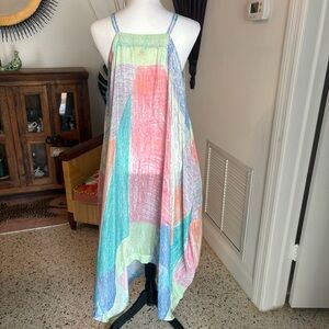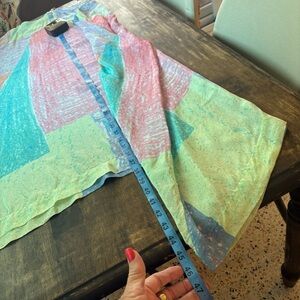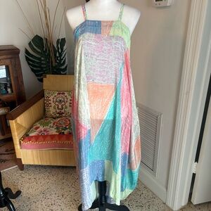 Hankerchief Hem. Casual to Special Occasion! Longer on sides! Square Neck! Pockets! Flowing Viscose! Excellent condition! Tagged XS/S. Listing under Small. Difficult to get measurements! Look closely! Ask questions! See all photos for description, condition and measurements!