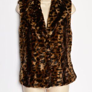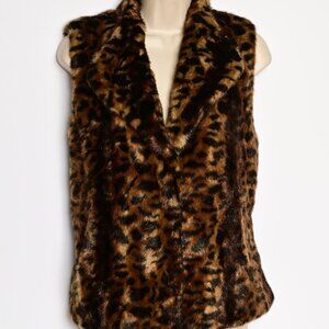 CALVIN KLEIN Rich Multi-colored Faux Fur Leopard Vest with Pockets. Size Large