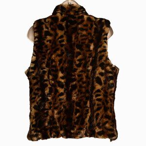 CALVIN KLEIN Rich Multi-colored Faux Fur Leopard Vest with Pockets. Women’s Size Large