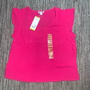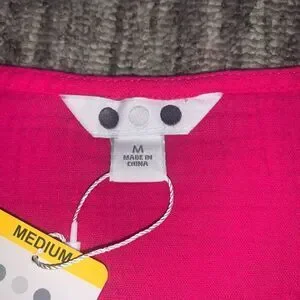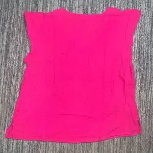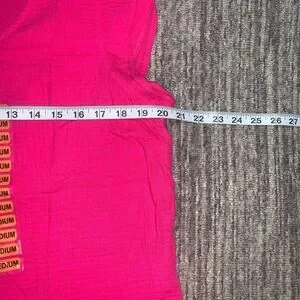 Three Dots Womens Medium Pullover Top Fushia Pink Short Sleeve Gauze Cotton NWT