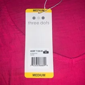 Three Dots Womens Medium Pullover Top Fushia Pink Short Sleeve 100% Cotton NWT
