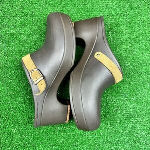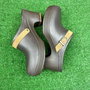 Crocs Signature Cobbler Clogs Brown Slip On Heels Dual Comfort Shoes Women's 7
