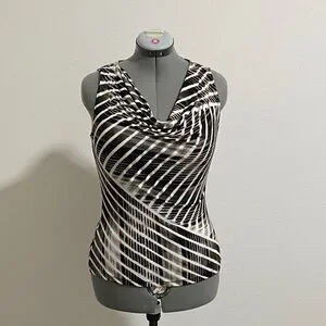 Calvin Klein Sleeveless Top Blouse Small Black White Taupe