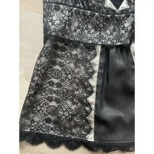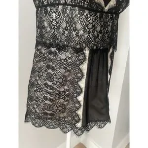 Excellent condition babydoll came from Ann Taylor. Silk overlay with black lace details. Side zip closure. Size 0 but would fit size small. Double check measurements in pictures for fit.