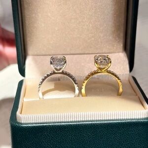 These stunning women's rings feature a dazzling oval-cut design, set in a blend of gold and silver tones. Perfect for adding a touch of elegance to any outfit.