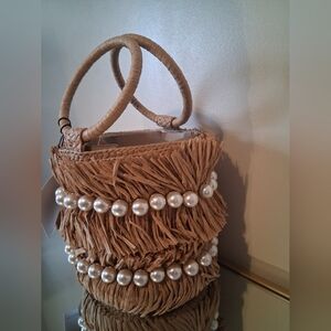 Round Pearl Bucket Bag is a statement piece made for warm-weather plans. Crafted from 100% straw, this round bucket silhouette features layered fringe and pearl detailing for a playful, elevated finish. Finished with a structured top handle, it’s perfect for vacations, brunch, beach dinners, and any outfit that needs a standout accessory.