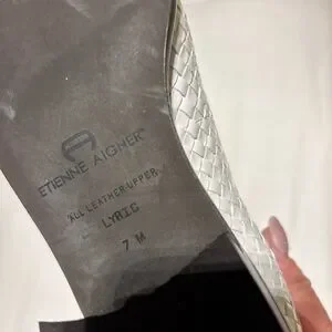 Etienne Aigner White Woven Leather Flats