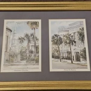 Framed and Matted Charleston, SC Watercolor Prints in Gold Frames