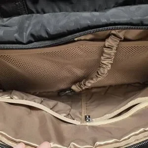 Stylish Ju-Ju-Be baby bag. Features a chic leopard pattern. Multiple compartments for organization. Durable and fashionable.