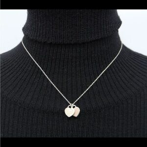 Tiffany & Co 💯% Auth Pink Mini Double Heart 925 Silver Necklace✨w/pouch✨EUC✨