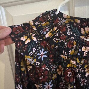 Lilla P Smocked Cuff Top in Black Floral