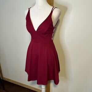Lulus Believe in Love maroon strappy open-back fit & flare mini dress size S