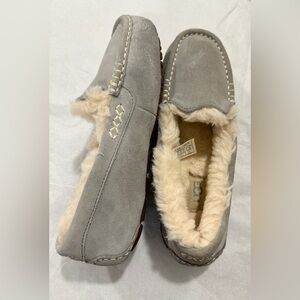 UGG Ansley Grey Suede Shearling Slippers Women’s Size 6 Genuine Sheepskin Lined