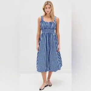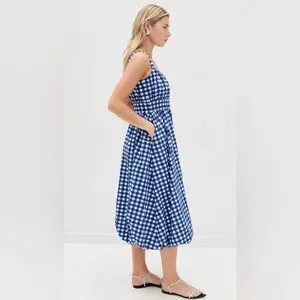 DARLING! NWT Tuckernuck Sea New York Cobalt Gingham Bubble Spring Dress Sz L