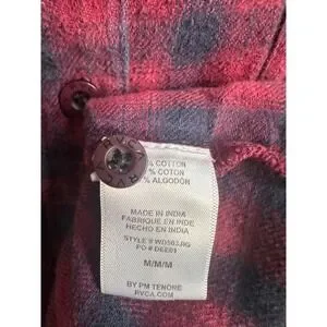 RVCA Men's Flannel Shirt Red Navy Plaid Long Sleeve Button Up Size M