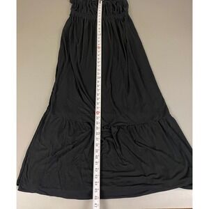 Keywords: Banana Republic dress, black maxi dress, strapless dress, frayed trim dress, rayon dress, size L, women's dress, summer dress, casual dress, vacation dress, boho dress, beach dress, comfortable dress, lightweight dress