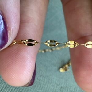 Gold Glitter Sequin Chain Necklace - Stainlees steel Flat Link