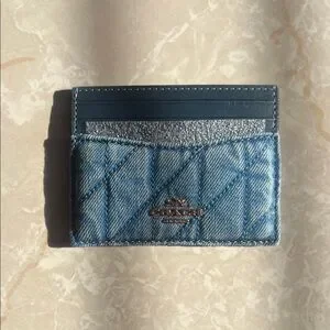 Stylish Coach card holder in denim. Ideal for organizing cards with flair.