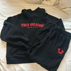 Super cute and in great condition! The sweatshirt is medium for a slightly oversized fit and the pants are small!