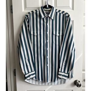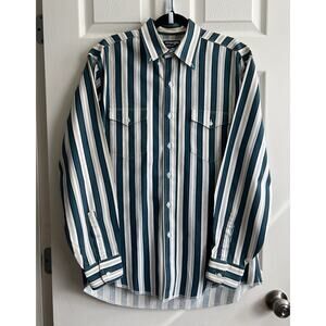 WRANGLER Vintage 90's Striped Cowboy Cut Reg Fit X-Long Tails Button Shirt 16x34