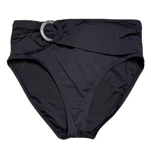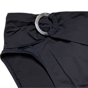 Designed with a high-waisted fit, these bikini bottoms naturally elongate your silhouette in the best way. Featuring a tortoise shell buckle and shirred paneling as subtle accents, this must-have swim style brings the flair and always flatters.
