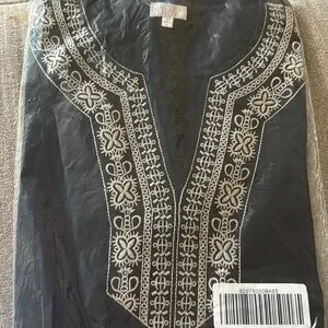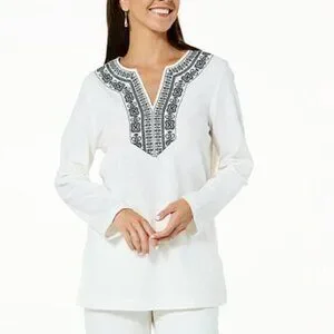 Jaclyn Smith Black Cream Embroidered VNeck Pull Over Blouse Large