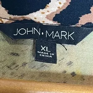 JOHN MARK Women Size XL Tunic Top Embroidered Mixed Print Tassel Artsy Boho