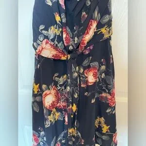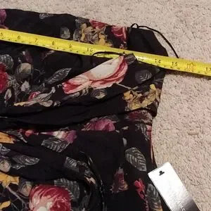 Strapless, floral, wedding guest dress, tie front design, flowy, navy & burgundy color way, all seasons