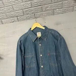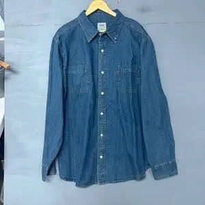 Levis Mens Long Sleeve Woven Denim Shirt Authentic Stonewash Blue XXL NEW