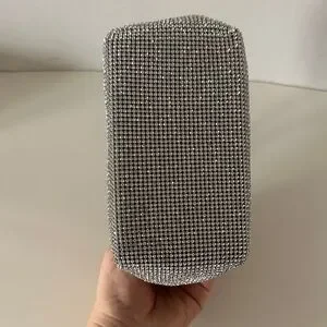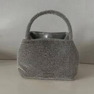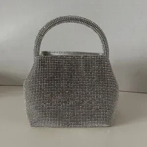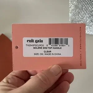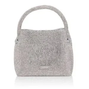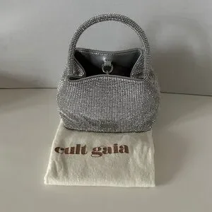 NWT Cult Gaia Solene Mini Top Round Handle Clear Rhinestone Silver Bag.