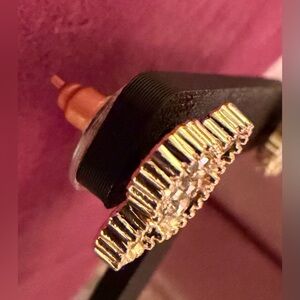 These are clover-shaped stud earrings, commonly associated with the "Alhambra" design style. The earrings feature a textured gold-tone or solid gold border (often called milgrain) and are pave-set with multiple round brilliant-cut diamonds or crystals. EUC