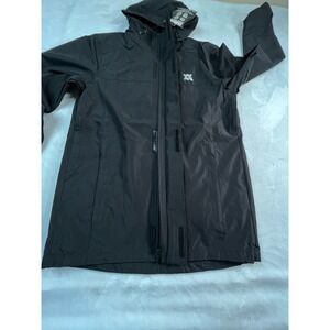 NWT DIXXON Mens XL Tech Jacket Black Hooded Rain Windbreaker Zippered Pockets