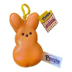 Cute orange Peeps backpack clip with a yellow hook. Perfect for adding a fun touch to your bag.