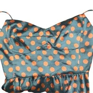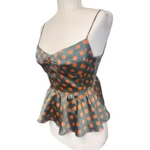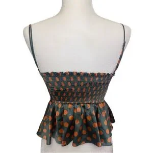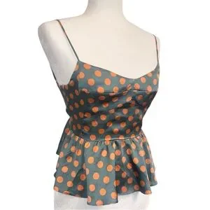 Zara Polka Dot Peplum Cami Top - Green with Orange Dots