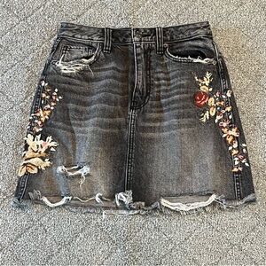 Abercrombie & Fitch Mini Skirt Womens Size 26 Black Embroidered Floral Denim Jean.