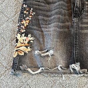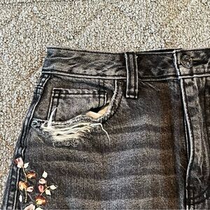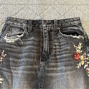 Abercrombie & Fitch Skirt Womens Size 26 Black Embroidered Floral Denim Jean