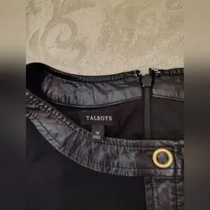 Chic black midi dress by Talbots. Features button accents. Perfect for versatile styling.