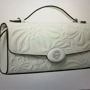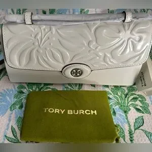 Tory Burch Robinson Embossed Floral Bag Blanc Leather New $340