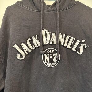 Classic Jack Daniels pullover hoodie. Soft fabric with drawstring hood. Front kangaroo pocket. Embroidered/printed front logo. Casual staple for fans of the brand. The Jack Daniel's size 2XL black hoodie is a stylish and comfortable pullover featuring a drawstring closure and a hood for added warmth. The hoodie is designed with a graphic print showcasing the brand's iconic logo, making it a perfect choice for fans of Jack Daniel's. It is suitable for all seasons and offers adjustable features for a customized fit, making it a versatile and fashionable addition to any man's wardrobe.