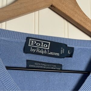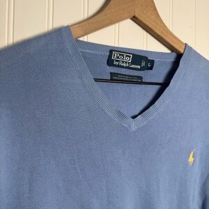 Polo by Ralph Lauren Men's Blue V-Neck Sweater 100% Pima Cotton Size Large