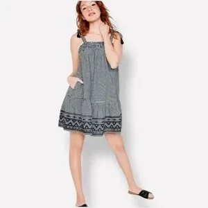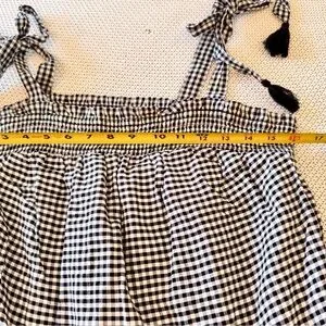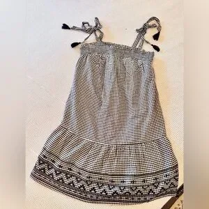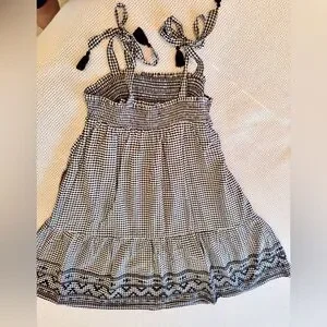 OLD NAVY Smocked Tiered Black White Gingham Plaid Mini Dress w Pockets & Tassels