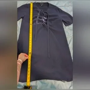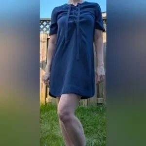 Stylish navy blue dress with lace-up front detail. Perfect for casual Stylish navy dress with lace-up front. Perfect for casual outings.
