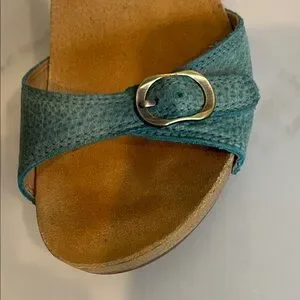 Dansko NEW Tricia Turquoise Blue Pebbled Leather Sandals EU 38/ US 7.5-8